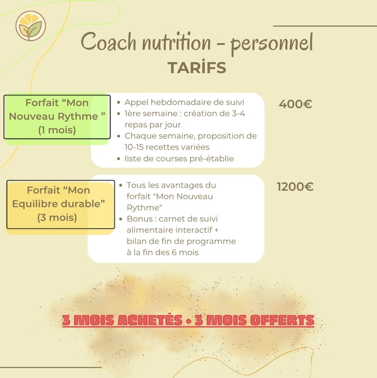 Nos Tarifs de Coaching en rééquilibrage alimentaire